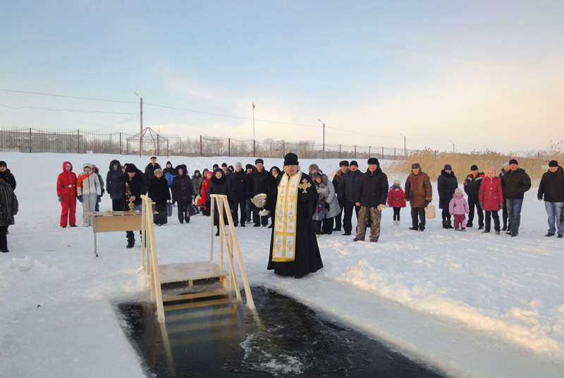 Затем отец Онисим отправился на пруд, где по распоряжению городской администрации были подготовлены прорубь и палатка, а также организовано присутствие полицейского патруля и медработника, наблюдавших, чтобы никто не пострадал во время омовения. Представители городской и районной администрации были уже здесь. Батюшка освятил иордань, и первые смельчаки, осеняя себя крестным знамением, стали погружаться в нее.