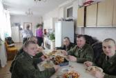 В 19 часов солдат и казаков накормили ужином, раздали им собранные прихожанками подарки, а также конфеты в казарму. Пусть у солдатиков сегодня будет праздничный ужин!