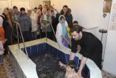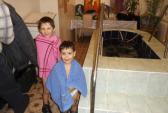 После чина великого освящения первыми под чутким контролем батюшки в Крещенской купели омылись благодатной водой маленькие прихожане.