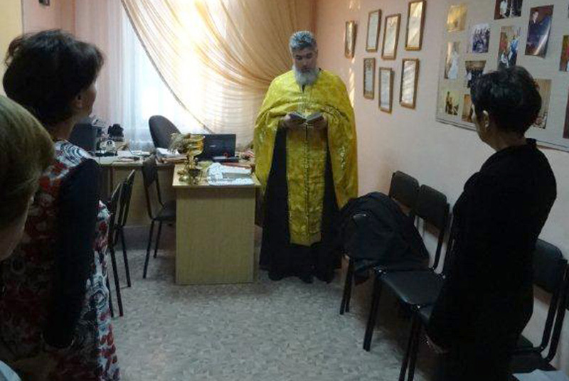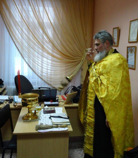 АДАМОВКА. 22 января 2014 г. Благочинный Адамовского округа, настоятель храма Покрова Пресвятой Богородицы п. Адамовки иерей Вячеслав Кочкин совершил чин освящения школы искусств п. Адамовки.