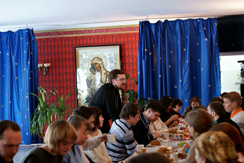 Руководитель клуба, иерей Андрей Ионов, а также его друг и помощник иеромонах Феодор (Липкин) вместе с молодежью совершили молитву и собрались за праздничным столом. За чашкой горячего чая зимним морозным днем молодые люди и священники вспоминали о проведенных мероприятиях, пели, делились впечатлениями, рассказывали о своих успехах. Немного позднее все участники встречи обсуждая интересующие темы, наметили план жизни клуба на текущий год.
