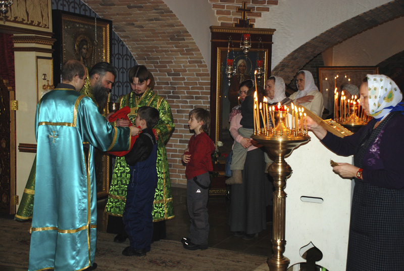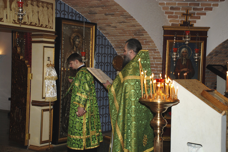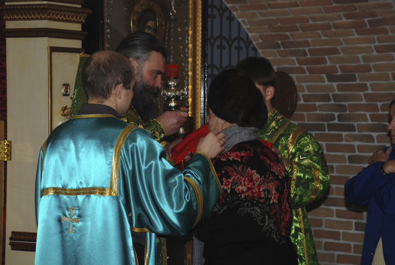 Среди многочисленных прихожан на Литургии было много причастников, исповедовавшихся накануне. Со словами проповеди к собравшимся обратился отец Александр. Батюшка поздравил всех с торжеством, кратко остановился на житии блаженной Ксении и рассказал о подвигах святой. Особый акцент отец благочинный сделал на том, что подвиг юродства невозможен по собственной прихоти, если Господь к этому не призовет: «На все есть Божественное призвание». «Подвиг юродства настолько велик и значителен, - продолжил священник, - что он превышает все остальные подвиги христианского делания. Юродивые уподобляются Самому Христу в величайшем смирении. Среди юродивых не было ни одного ни еретика, ни отступника, ни еще кого-то, кто бы прервал свой жизненный подвиг, сошел со своего Креста, потому что Сам Господь Своей неизреченной благодатью охраняет таких людей от диавольских козней, потому что эти люди напрямую служат Ему и показывают всем остальным людям пример христианского смирения». В то же время батюшка отметил, что «русская земля - самое богатое, самое обильное, самое плодородное место для подвигов юродства ради Христа. Самое большое количество юродивых дала Вселенской Церкви русская земля».
