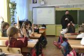 Встреча со школьниками была посвящена православному учению о взаимоотношениях Бога и человека. Священник говорил с ребятами о душе, совести, добрых и злых поступках. Особое внимание отец Андрей обратил на умение просить прощения у ближних и прощать их. В конце встречи батюшка подарил учащимся настольную игру-хоккей для занятного проведения времени на школьных переменах.