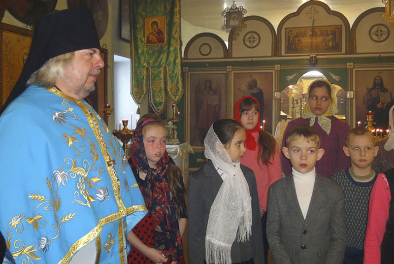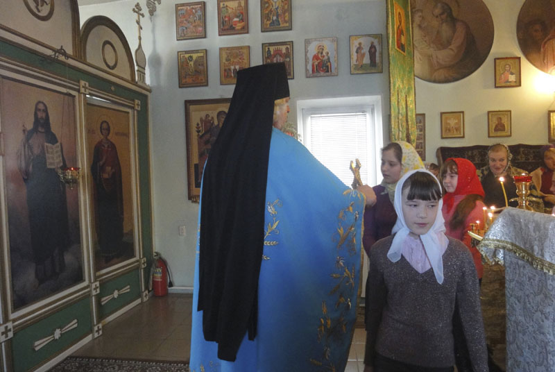 ЯСНЫЙ. 2 марта 2014 г. Педагоги и воспитанники воскресной школы и прихожане храма св. вмч. и целителя Пантелеимона поздравили благочинного Ясненского округа, настоятеля храма игумена Онисима (Пашинова) с днем тезоименитства.
