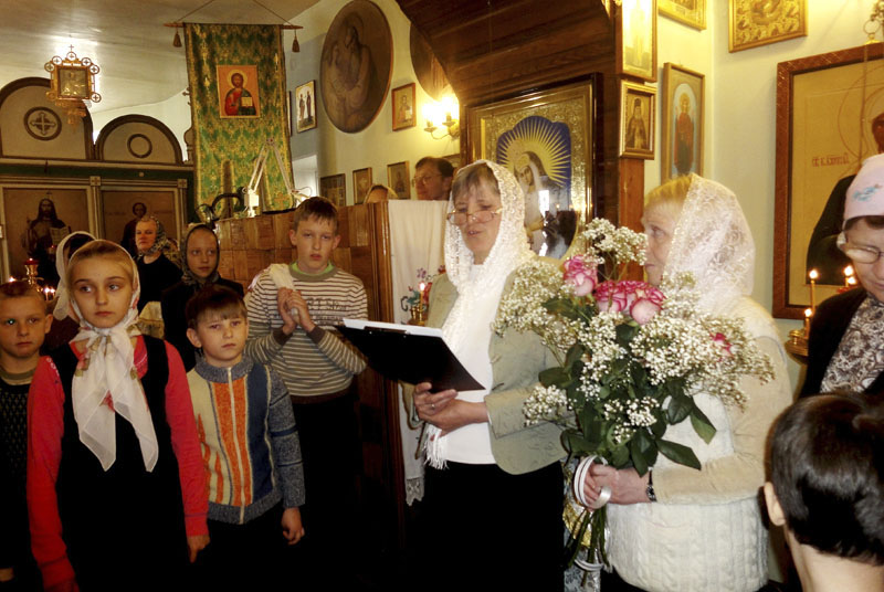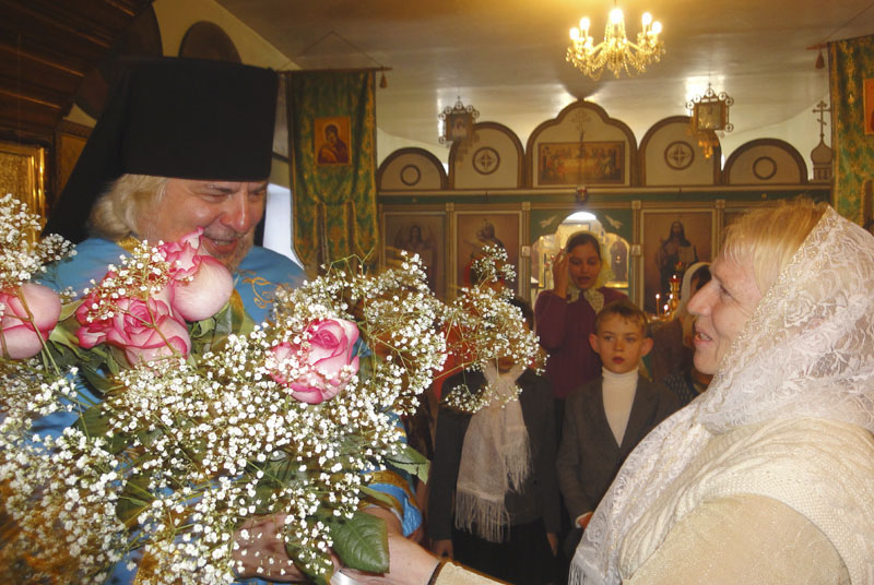 Регент народного хора Людмила Ангелюк преподнесла от всех прихожан любимые батюшкины розы с пожеланиями многая лета, что подхватил уже приходской хор. Доброе настроение, пожелания счастья и успеха на поприще служения Господу стали началом Прощеного воскресения. Игумен Онисим на проповеди как раз говорил, что пустые, пусть даже красивые, слова не угодны Богу – Господь оценивает человека по искренности его покаяния, по милосердным поступкам, по тому деятельному добру, что человек несет окружающим. Единение прихода в поздравлении своего настоятеля, цветы, спектакль, песнопения – это и было деятельное добро.