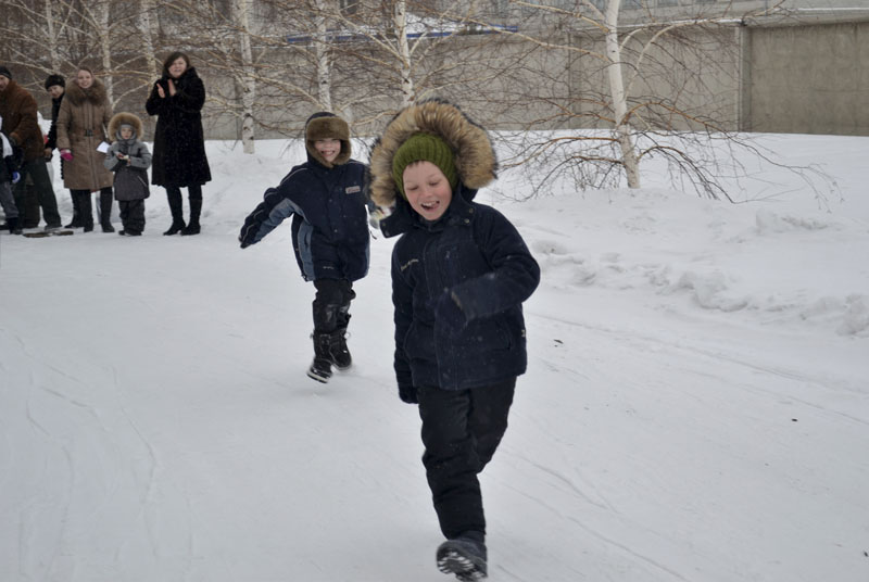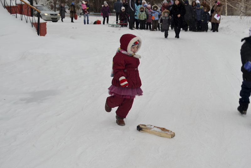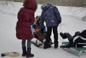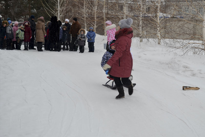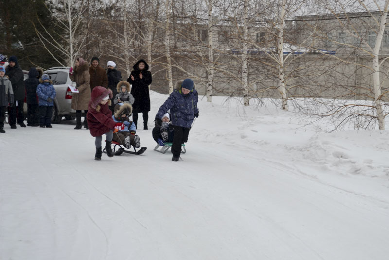 Затем начались игровые забавы: первой стартовала веселая эстафета «За дровами»: кто быстрей добежит до полена. Бегали все: и совсем маленькие, и старшие. После эстафеты – гонка на санках. Тут уже соревновались только старшие ребята, а малыши с восторгом и визгом катались в санках. Не обошлось и без столкновений, но это только еще больше прибавило веселья.