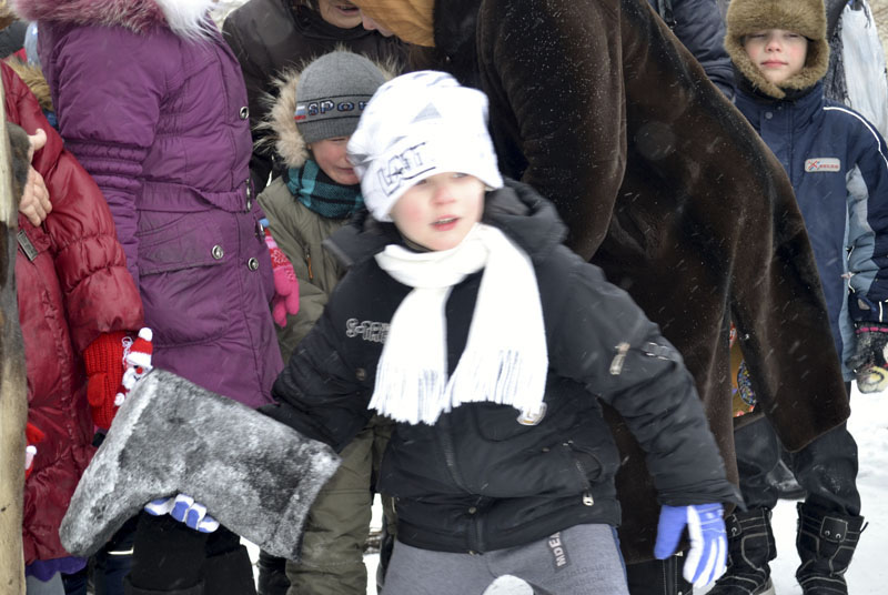 Еще одна забава на силу и ловкость увлекла собравшихся – это прицельное кидание валенка. Конечно, в этом соревновании первыми были старшие, но и малыши старались не отставать.