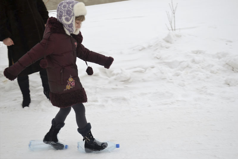 А когда начались лыжные гонки, тут и взрослые не смогли сдержать смех: устроители праздника изготовили лыжи из пластиковых бутылок! Но ребята и здесь справились с заданием! Даже такие необычные лыжи их не поставили в тупик, и они умудрились не только устоять на них, но и с успехом участвовать в гонке.