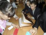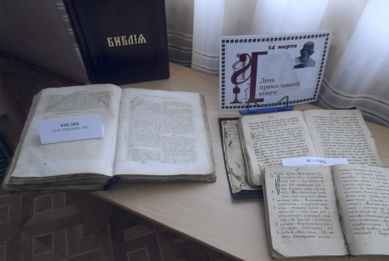 Мальчики и девочки впервые в жизни могли не просто увидеть, но и прикоснуться к уникальным старинным православным книгам выставки «Через книгу – к добру и свету». Бесценные выставочные экспонаты были собраны из книжных фондов Центральной районной библиотеки, библиотек храма святых апостолов Петра и Павла и кафедрального собора святого праведного Иоанна Кронштадтского. Вниманию публики предстали Библия, изданная в 1863 году, Евангелие от 1893 года, Новый Завет - 1897 г., Лествица преподобного отца нашего Иоанна Лествичника – 1852 г. и др. Эти старинные книги, напечатанные в конце 19 и начале 20 веков, показывают нам связь времён и поколений. Из рода в род их передавали и хранили на протяжении более 100 лет.Можно только догадываться, какое количество людей читало эти уникальные издания, несущие слово Божие из поколения в поколение. В очередной раз убеждаемся, что Вечные Истины не подвластны ни времени, ни политической идеологии.