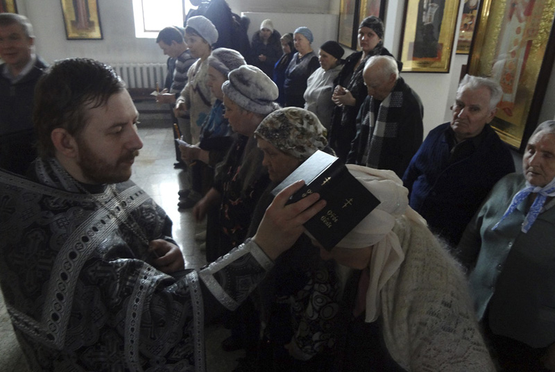 НОВОТРОИЦК. 16 марта 2014 г. В соборе святых апостолов Петра и Павла г. Новотроицка состоялось церковное Таинство Елеосвящения (соборования недужных). Таинство было совершено вслед за последованием пассии, особого богослужения, совершаемое Великим постом, во время которого читаются тексты Евангелия, повествующие о страданиях Христа.