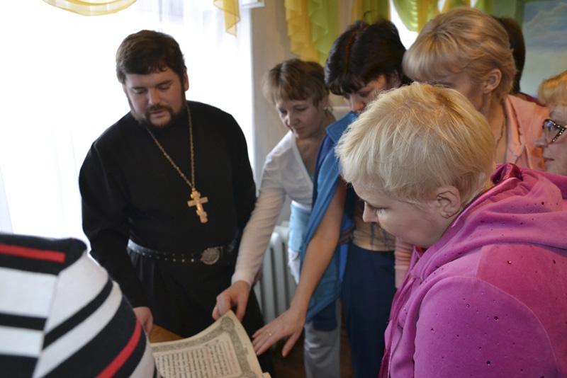 17 марта о. Андрей посетил реабилитационный центр «Бодрость», где в беседе с проходящими лечение инвалидами раскрыл тему истории книгопечатания на Руси и важность ежедневного чтения Священного Писания для православного христианина. Присутствующие на встрече имели возможность прикоснуться к богослужебному Евангелию, которому в этом году исполняется 101 год. В фонд библиотеки реабилитационного центра отец Андрей в качестве подарка передал Новый Завет и православную детскую литературу.