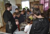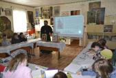 16 марта настоятель храма иерей Андрей Пелипенко провел беседу с учащимися воскресной школы на тему: «Первая печатная книга на Руси». По окончании беседы дети рассмотрели выставку старинных богослужебных книг.