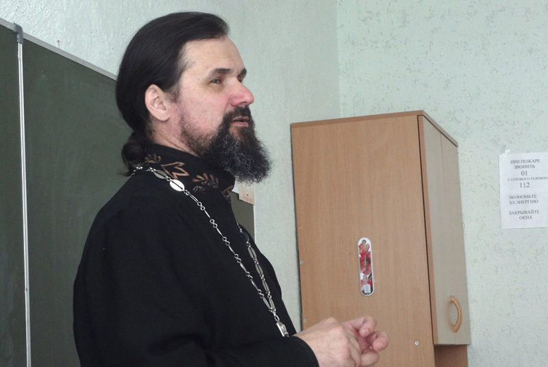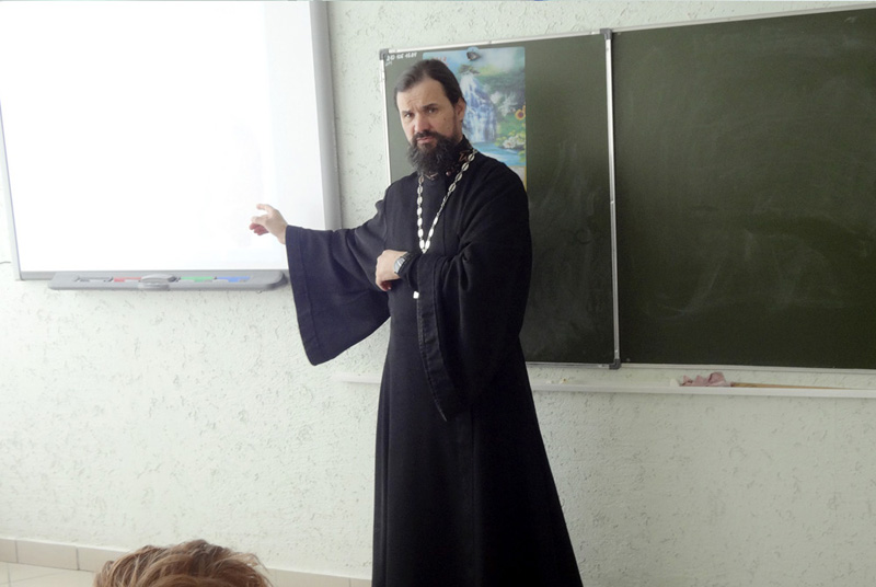 Священник выступил перед учащимися с видеолекторием на тему: «Диалог о вредных соблазнах». После беседы школьники интересовались очень многими вопросами, с интересом выслушивая ответы. Встреча старшеклассников со священнослужителем стала плодотворной. Ребят волновали темы нравственности, духовности, любви. К сожалению, подобные встречи единичны, а у детей есть потребность в общении на духовные темы. Незнание духовных законов приводит к их нарушению, следовательно, к огромным жизненным неприятностям.