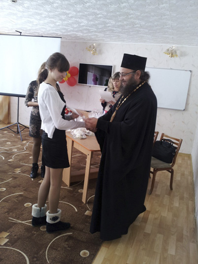 Победители и участники получили дипломы и ценные призы, а лучшим чтецам от кафедрального собора св.прав. Иоанна Кронштадтского о. Игорь вручил денежные премии. «…Приятно отметить, что и преподаватели, и ребята очень серьезно подготовились к конкурсу. Хочу отметить музыкальное и художественное оформление ваших номеров, все юные конкурсанты продемонстрировали глубокое понимание исполненных произведений…», - отметил в заключительном выступлении батюшка.