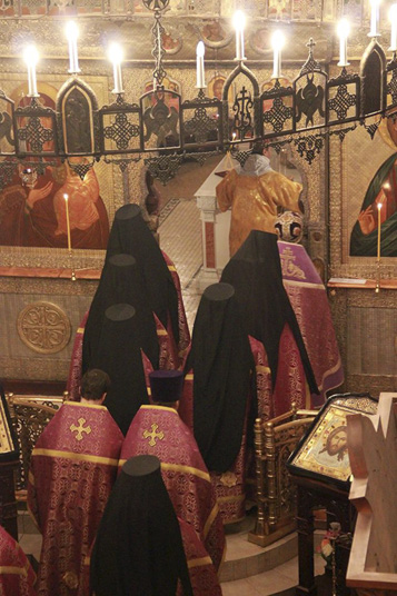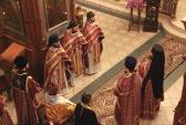 МОСКВА. 22 марта 2014 г. Клирик Орской епархии, настоятель храма святой преподобномученицы Великой княгини Елизаветы ст. Губерли иерей Максим Бражников, находясь на сессии в Сретенской духовной семинарии г. Москвы, принял участие в архиерейской ночной Литургии.