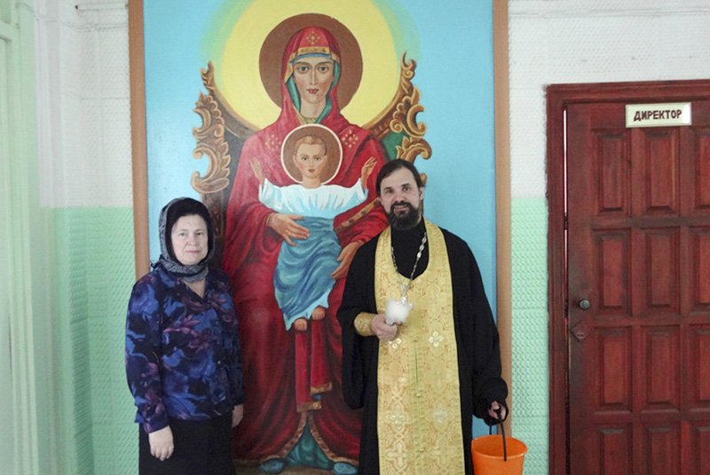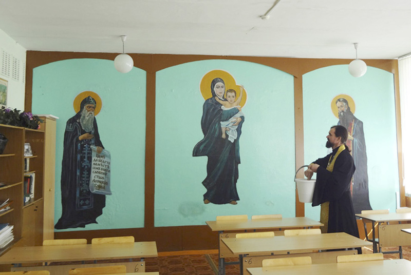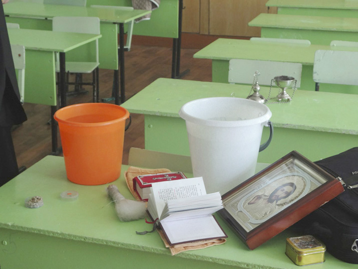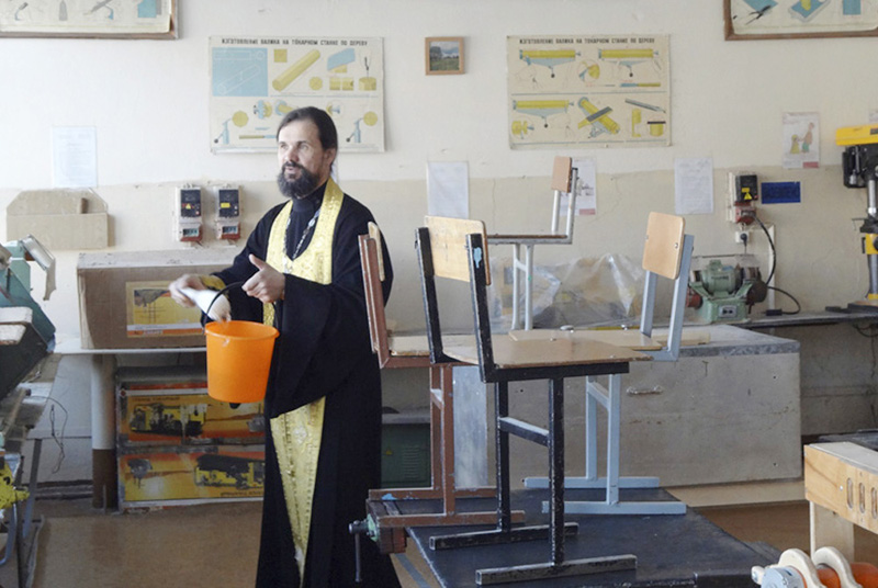 Затем отец Сергий окропил святой водой каждый учебный класс, молясь при этом, чтобы вся нечистая сила покинула данное здание, а Ангел-Хранитель вошел и остался в нём. И чтобы Бог хранил всех, работающих и пребывающих в гимназии.