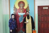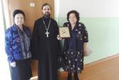 Завершив чин освящения, иерей Сергий благословил всех сотрудников гимназии № 1 в лице директора С.Артемьевой и подарил икону Спасителя.