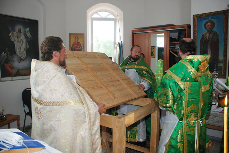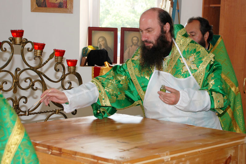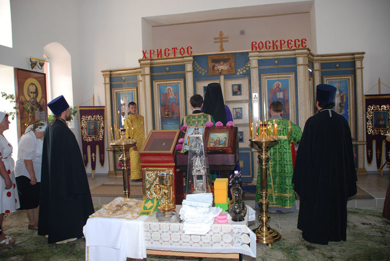 В освящении престола – главной священной части алтаря храма – участвовали личный секретарь епископа Иринея игумен Лазарь (Савчук), благочинный Орского округа протоиерей Александр Куцов, благочинный Гайского округа протоиерей Димитрий Солонин, настоятель храма Покрова Пресвятой Богородицы Димитрий Макаров, протоиерей Георгий Дынник, диакон Григорий Сычев. В престол храма вложена частица мощей священномученика Владимира Киевского.