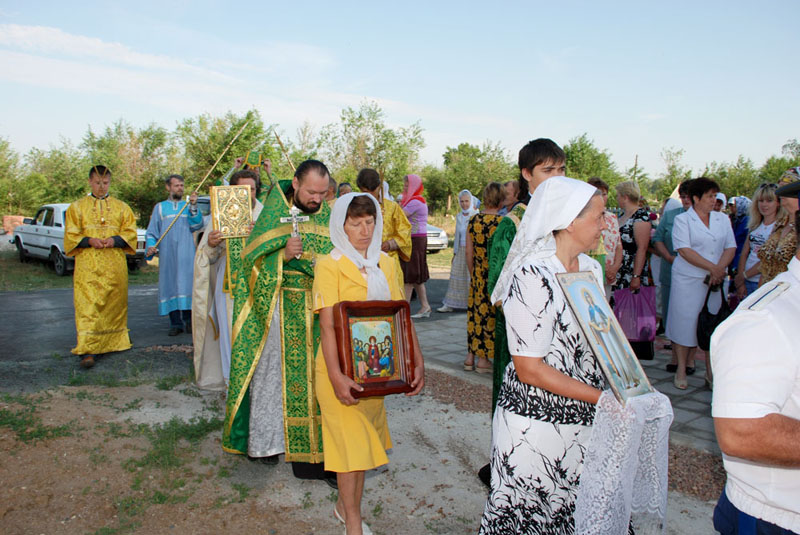 Храм был празднично украшен. Верующие пришли с иконами, цветами. В торжестве приняли участие казаки – хранители православной веры. Во время крестного хода им доверили нести хоругви.