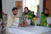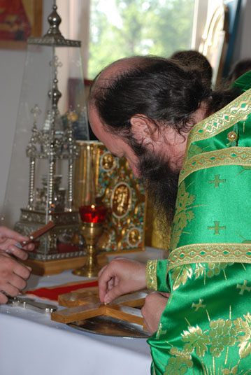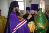 Его Преосвященство наградил наперсным крестом настоятеля храма о. Димитрия Макарова, особо потрудившегося в деле воссоздания храма и организации приходской жизни.