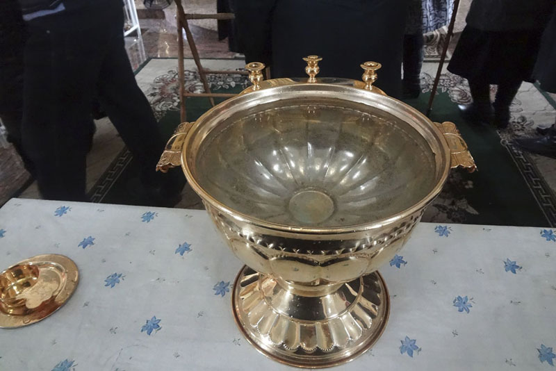 Милостью Божией один из прихожан собора побывал в подмосковном г. Серпухове, где на берегу реки Нары расположился Высоцкий мужской монастырь. В этой древней обители находится чудотворная икона Божией Матери «Неупиваемая чаша». Именно оттуда паломник из Новотроицка привез святую воду.