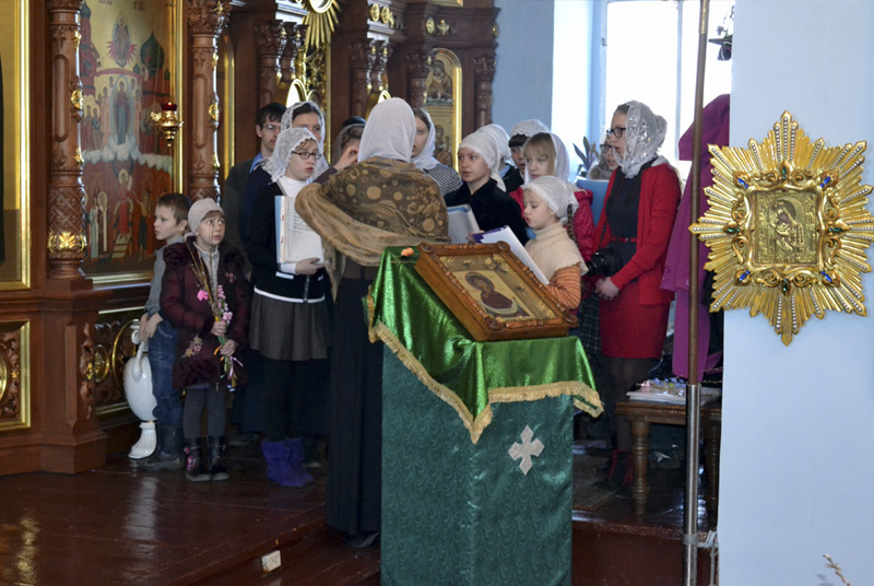 Накануне настоятелем протоиереем Анатолием Сопигой был совершен чин освящения верб, а ученики воскресной школы украсили их заранее изготовленными украшениями. По окончании вечернего богослужения вербочки раздали всем молящимся.