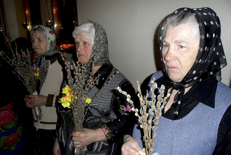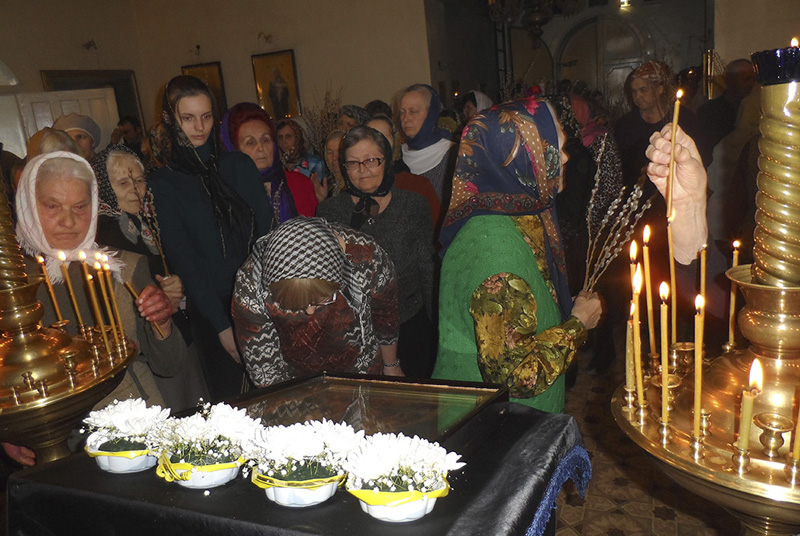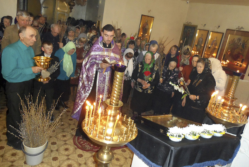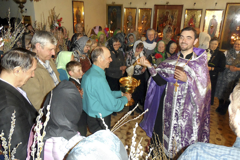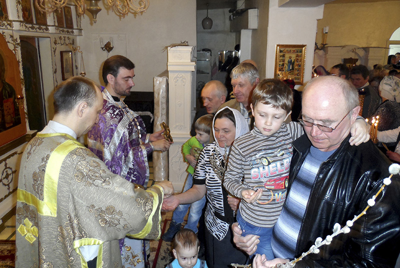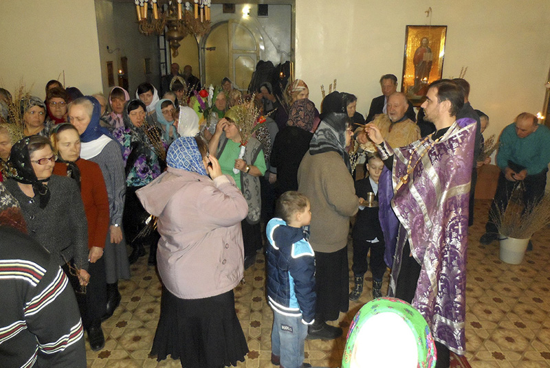 Накануне, 12-го апреля, прошло всенощное бдение и освящение вербы, символизирующие в России пальмовые ветви.