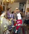 Участвуя в богослужении, вслушиваясь в слова, мы вырываемся из круговорота сиюминутного, и вечность вторгается в нашу жизнь. Для большинства верующих кульминацией празднования стало причастие Святых Христовых Тайн.