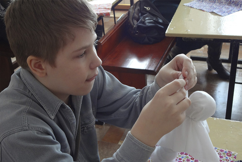 НОВОТРОИЦК. 13 апреля 2014 г. В воскресной школе имени святого благоверного князя Александра Невского при Петропавловском соборе г. Новотроицка состоялся мастер-класс по изготовлению тряпичной куклы.