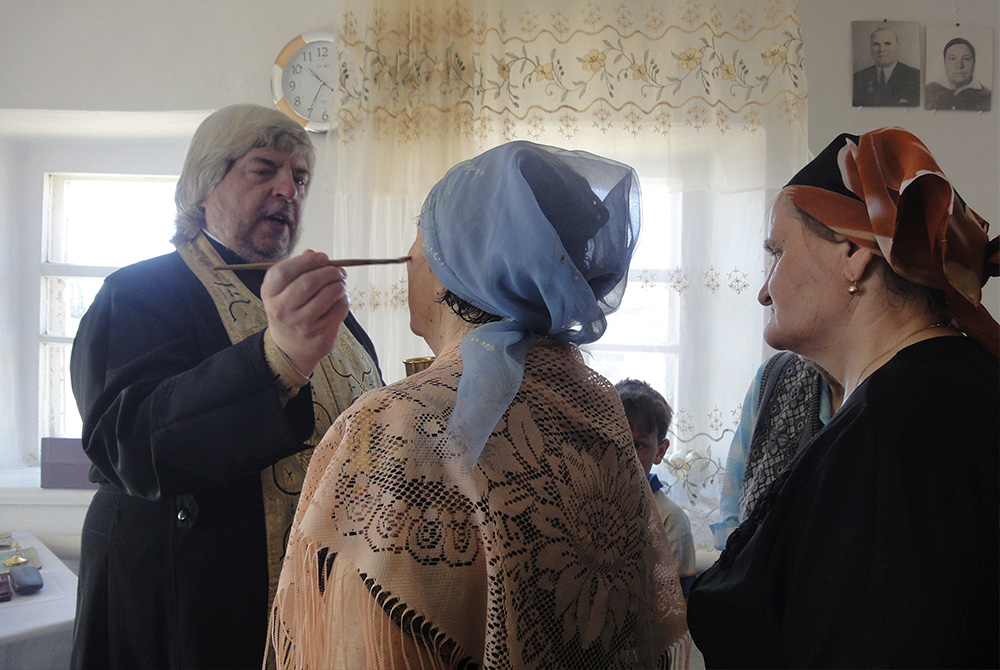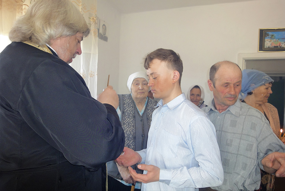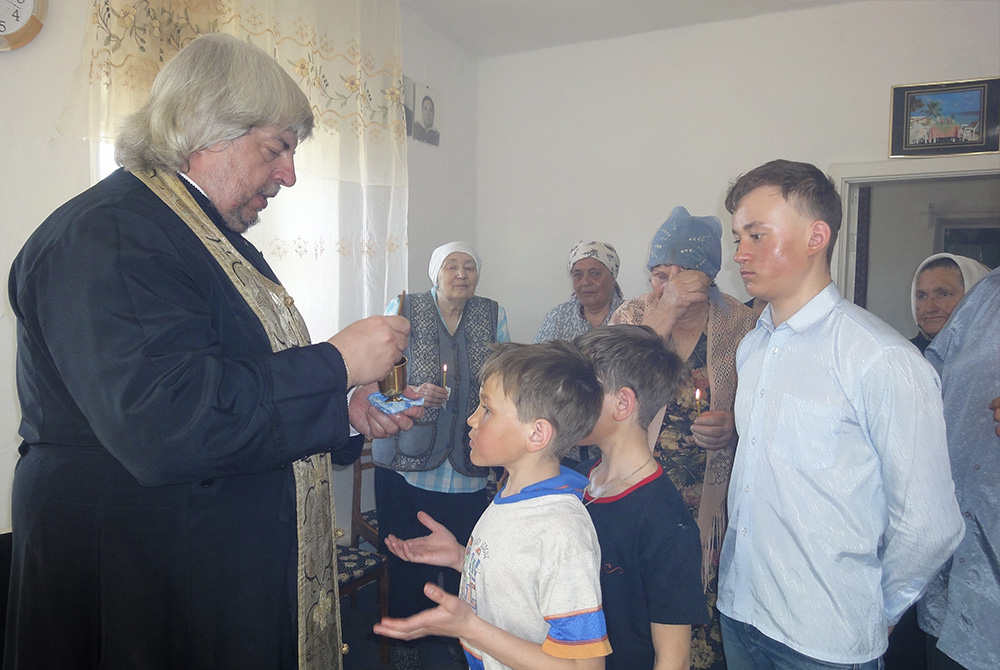 В Страстную седмицу батюшка последний раз перед Пасхой Христовой наставляет, утешает, исповедует и причащает еленовцев в их поселке у преданной прихожанки, помощницы Галины, давно уже создавшей уголок Православия в своем доме.