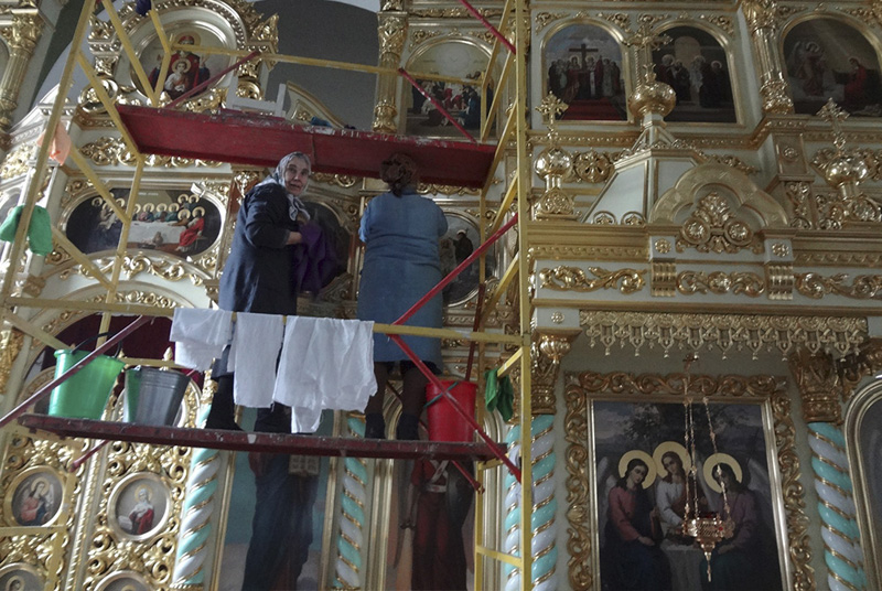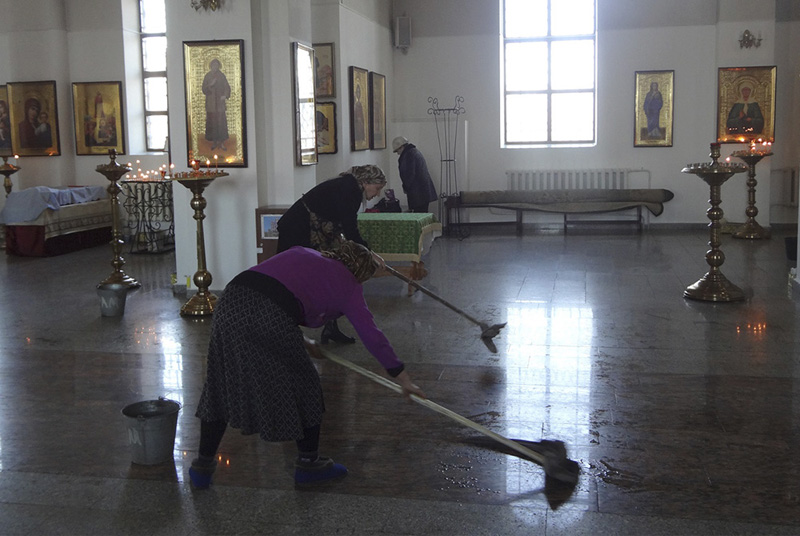 Храм – это особое место для православных, которое вызывает трепетные чувства. По традиции в преддверии праздника Воскресения Христова прихожане Петропавловского собора собирались вместе, чтобы совершить генеральную уборку помещения и территории храма. Навели чистоту в верхнем и нижнем храмах, помыли паникадила, отмыли от копоти иконостас, почистили подсвечники, отскоблили полы от воска и др. Территорию собора также привели в порядок: побелили бордюры и очистили газоны от прошлогодней листвы.