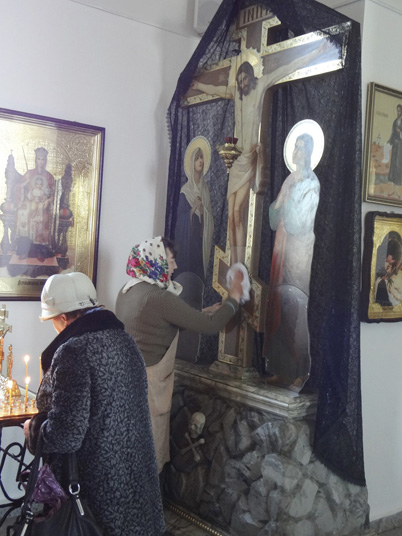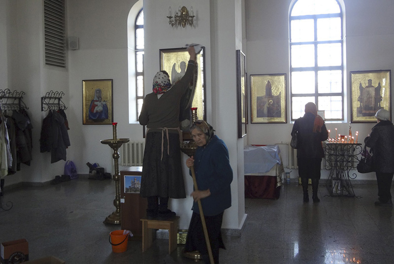 НОВОТРОИЦК. 17 апреля 2014 г. В соборе св. апп. Петра и Павла прихожане активно готовятся к Светлому Воскресению Христову, памятуя слова св. прп. Серафима Саровского: «Если только тряпочкой протереть пол в доме Господнем, – превыше всякого другого дела поставится у Бога!».