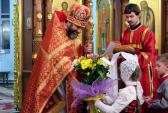 В конце праздничного богослужения ученики воскресной школы от имени всех присутствующих поздравили о. Анатолия с большой наградой – правом ношения Митры: