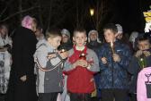 Славить Христа пришли «и стар и млад». На общем фоне голосов особенно звонко раздаются детские голоса – это ученики воскресной школы. Они в полном составе присутствуют на богослужении. Дети готовились к этому празднику - многие постились, исповедались и причастились, некоторые будут причащаться в эту торжественную Пасхальную ночь.