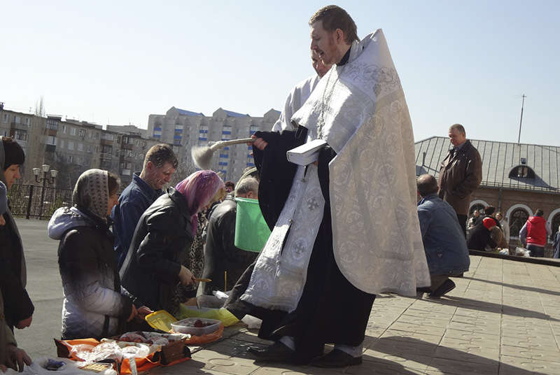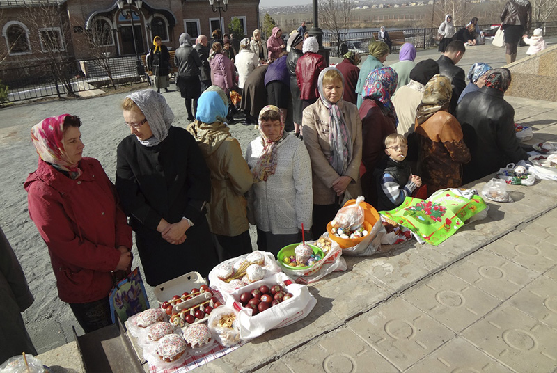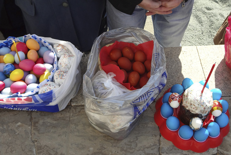 После службы духовенство храма освятило принесенные прихожанами и верующими жителями города куличи, пасхи, яйца и другую снедь. Принося в церковь продукты для освящения, православные люди просят Божьей помощи в трудах своих, результатом которых, в конечном счёте, является наличие продуктов на семейном столе. Кроме того, оставляя часть освящённых продуктов в храме, люди жертвуют её нуждающимся, тем самым творя милостыню, что в христианстве считается одной из самых великих добродетелей.