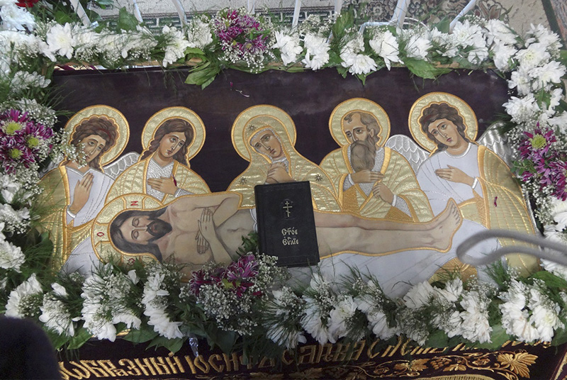 В течение субботнего вечера ещё несколько раз совершались освящения пасхальной снеди. Завершилось приготовление к Великому Празднику Пасхи чтением Деяний святых апостолов в десять часов вечера.