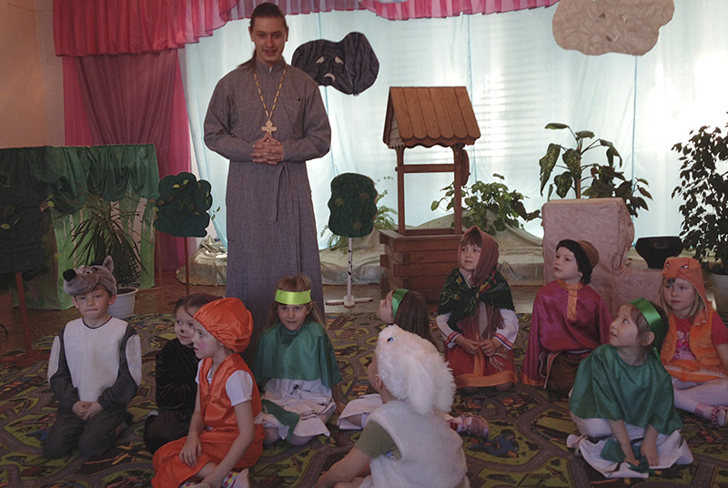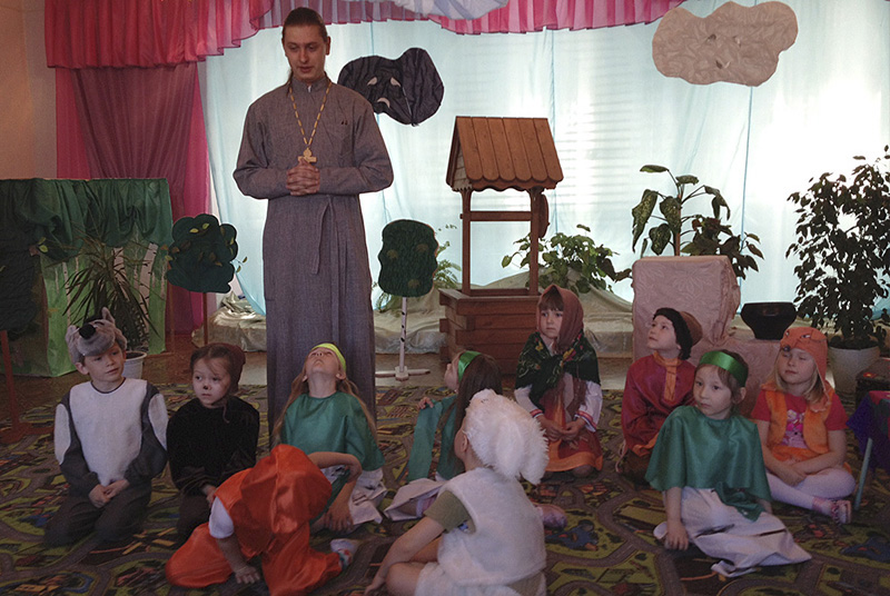 МЕДНОГОРСК. 23 апреля 2014 г. В третий день Светлой седмицы в детском саду «Солнышко» города Медногорска состоялся утренник в честь Светлого Христова Воскресения, куда был приглашен клирик храма святителя Николая Чудотворца города Медногорска (микрорайона «Южный») иерей Александр Курсаков.