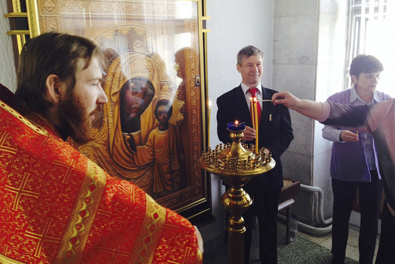 ОРСК. 24 апреля 2014 года. В молитвенной комнате иконы Божией Матери «Табынская» аэропорта г.Орска состоялся пасхальный молебен о здравии всех сотрудников, их родных и близких. Молебен совершил настоятель молитвенной комнаты иерей Геннадий Новиков.