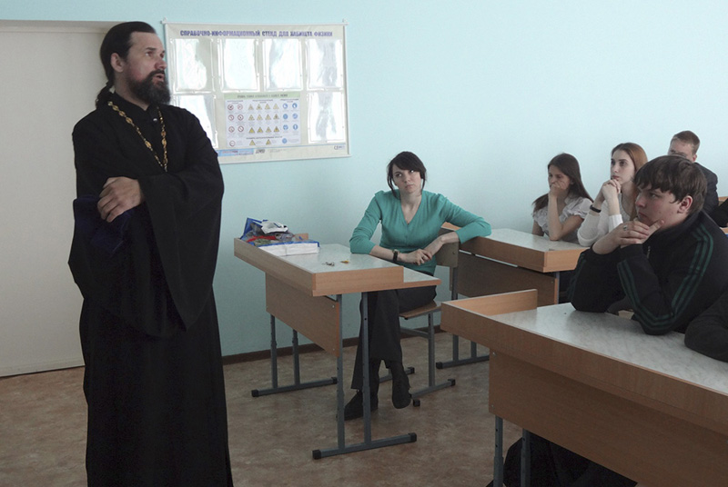 НОВОТРОИЦК. 25 апреля 2014 г. Благочинный Новотроицкого округа, настоятель собора святых апостолов Петра и Павла г. Новотроицка протоиерей Сергий Кваша посетил среднюю общеобразовательную школу № 6 г. Новотроицка.