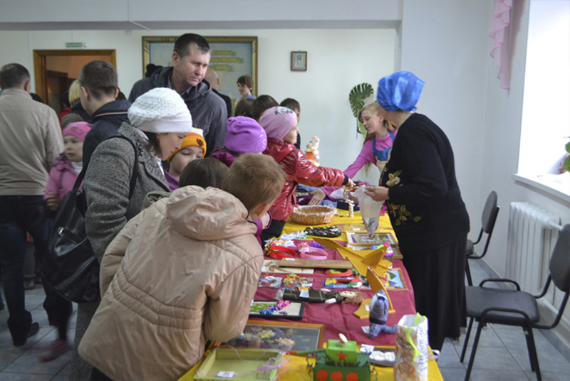 Ректор гимназии, настоятель храма Преображения Господня протоиерей Александр Куцов пригласил на ярмарку всех прихожан, собравшихся в этот день на утреннем богослужении. Желающих оказалось много. Очень быстро были раскуплены многочисленные детские поделки и разнообразные кулинарные изделия, выпеченные родителями и учащимися. Было выручено 8870 рублей, на которые будут закуплены подарки для ветеранов Великой Отечественной войны к празднику 9 мая.