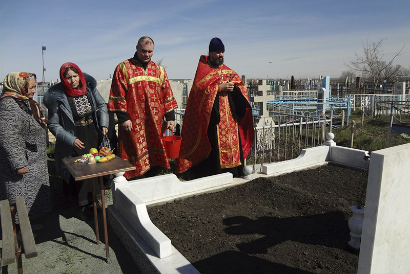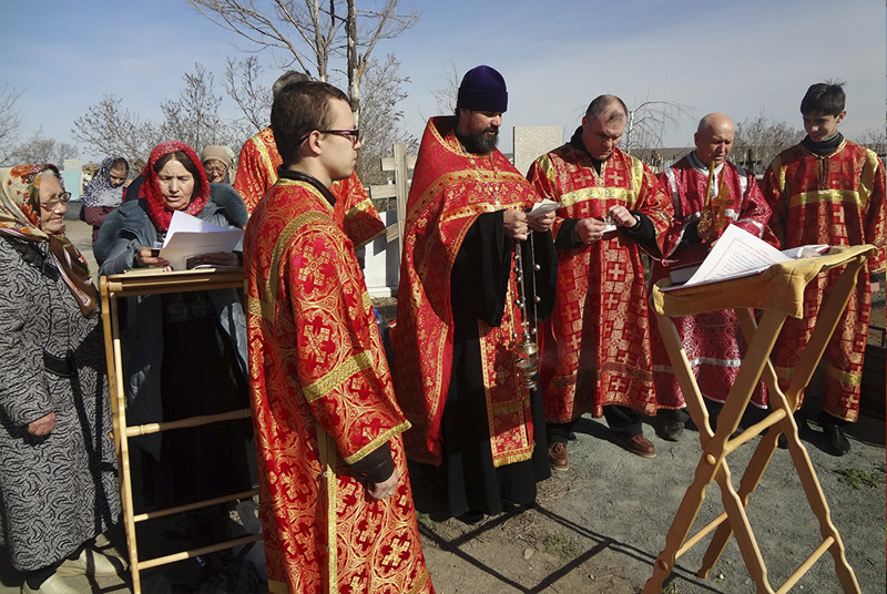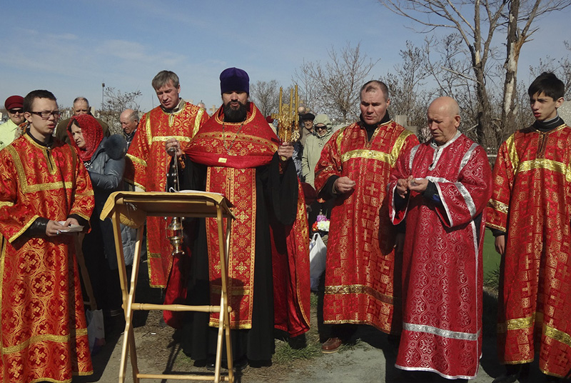 В соборе святых апостолов Петра и Павла г. Новотроицка была совершена Божественная литургия, а затем – заупокойная панихида. Затем благочинный Новотроицкого округа, настоятель собора протоиерей Сергий Кваша поехал на кладбища, где его ждали православные, чтобы на месте захоронения усопших помолиться во время панихиды. В этот день на кладбищах Новотроицкого благочиния панихида служилась по-особому, с радостным возгласом: «Христос Воскресе!». Эту радость о воскресшем Господе православные принесли своим родным и близким усопшим. Отец Сергий побывал сегодня на старом кладбище г. Новотроицка, на кладбище п. Аккермановки. После панихиды в своём пастырском слове священник призывал верующих больше молиться за своих родных усопших православных христиан. Ведь еще святитель Иоанн Златоуст говорил: «Постараемся, сколько возможно, помогать усопшим вместо рыданий, вместо пышных гробниц – нашими о них молитвами, милостынями и приношениями».