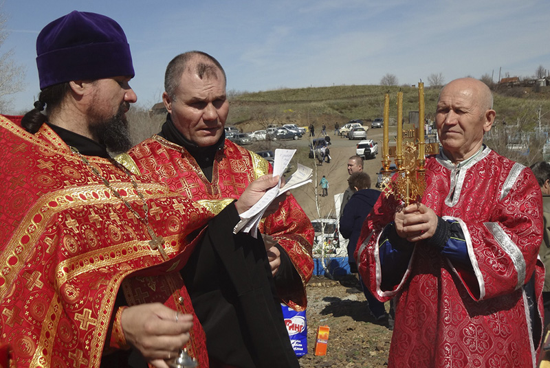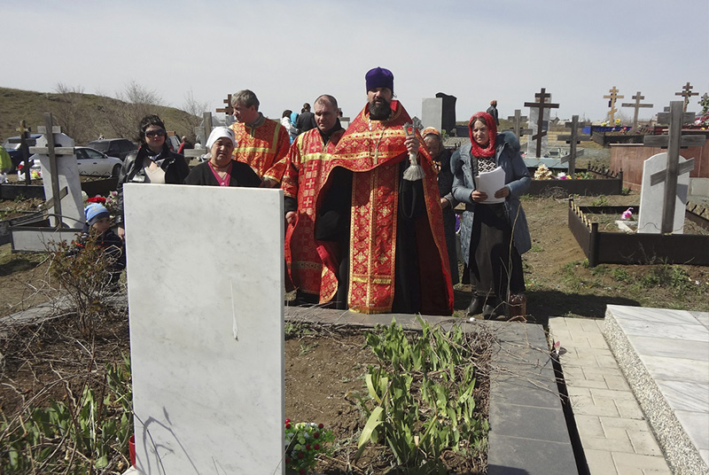 НОВОТРОИЦК. 29 апреля 2014 г. Сегодня по церковному православному календарю – Радоница. В этот день на кладбищах Новотроицкого благочиния панихида служилась по-особому: с радостным возгласом: «Христос Воскресе!».
