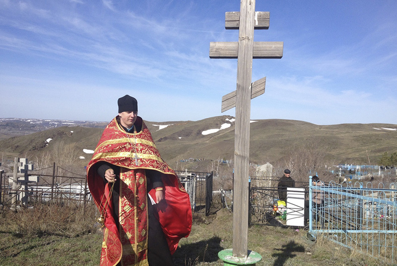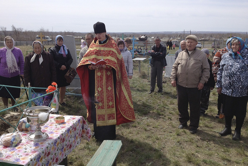 МЕДНОГОРСК. 29 апреля 2014 г. Клирик храма святителя Николая Чудотворца города Медногорска (микрорайона «Южный») иерей Александр Курсаков совершил богослужения на Радоницу, в день поминовения усопших.