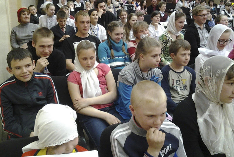 Немного задержавшись в пути, команда из Кувандыка сразу оказалась на сцене ДК им. Ф.Дзержинского, где уже собрались представители еще 10 команд от православных гимназий и воскресных школ разных уголков обширной Оренбургской митрополии.
