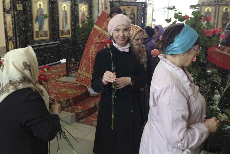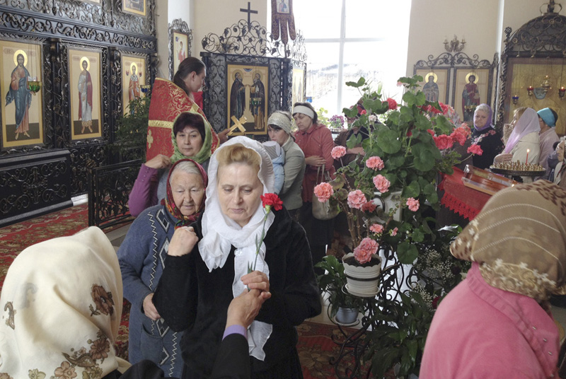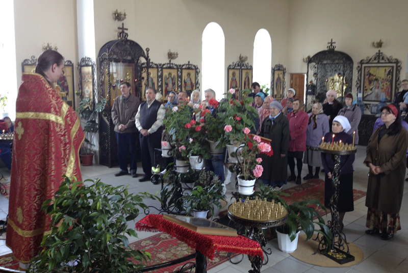 МЕДНОГОРСК. 4 мая 2014 г. В 3-ю неделю по Пасхе в храме святителя Николая Чудотворца города Медногорска (микрорайона «Южный») была совершена Божественная литургия. После богослужения клирик храма иерей Александр Курсаков поздравил пришедших прихожанок с праздником.