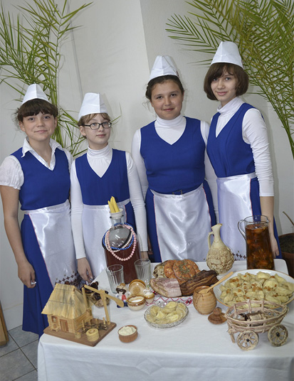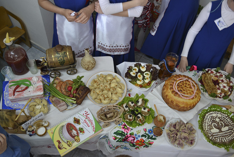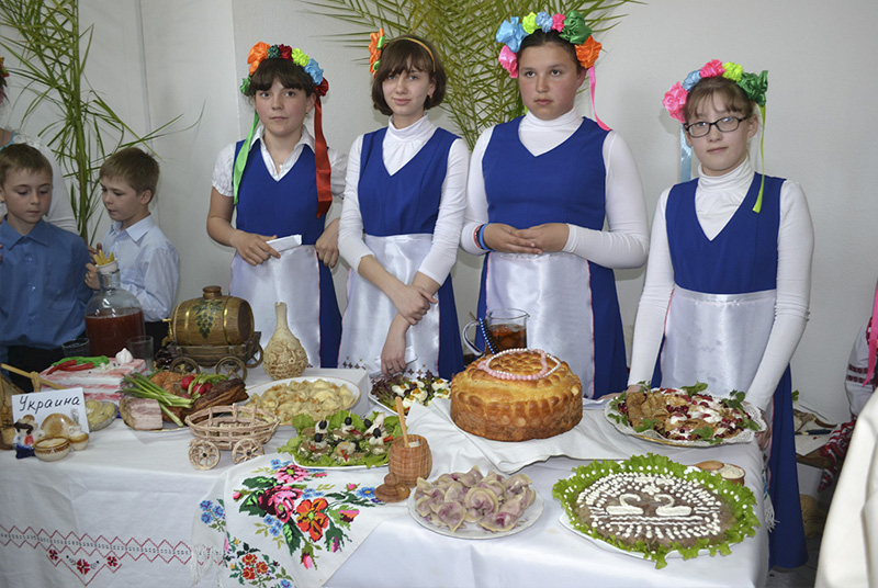 Такой конкурс, к удовольствию всех, стал уже доброй традицией. Участникам было предложено показать национальные кухни народов России. У нашей школы не было сомнений в выборе национальной кухни: все единогласно решили - украинская. Команде дали название «Голубь мира». А почему выбрали Украину? На этот вопрос дети ответили в стихах: