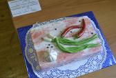 Большой интерес всех присутствующих вызвал «шматок» сала, лежащий на столе, украшенный зеленым лучком, чесночком и красным перчиком. Как оказалось, это был торт, приготовленный для гостей мамой Ангелины - Юлией Чижиковой. Все так были рады такому сюрпризу, что съели его мгновенно.