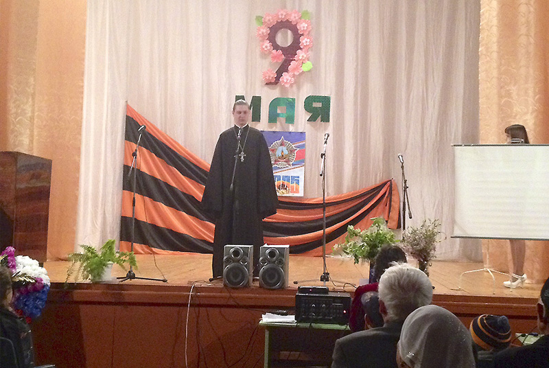 ИЛЬИНКА. 9 мая 2014 г. Клирик храма святителя Николая Чудотворца города Медногорска (микрорайона «Южный») иерей Александр Курсаков посетил праздничный концерт, посвященный Дню Победы.