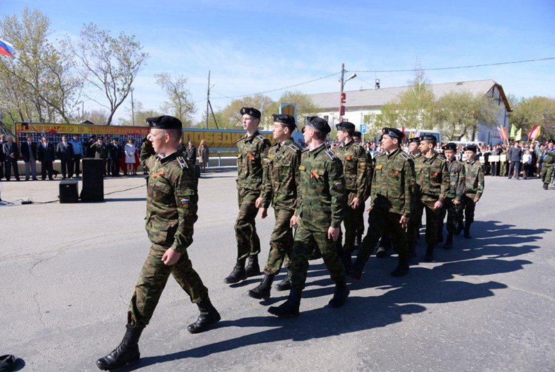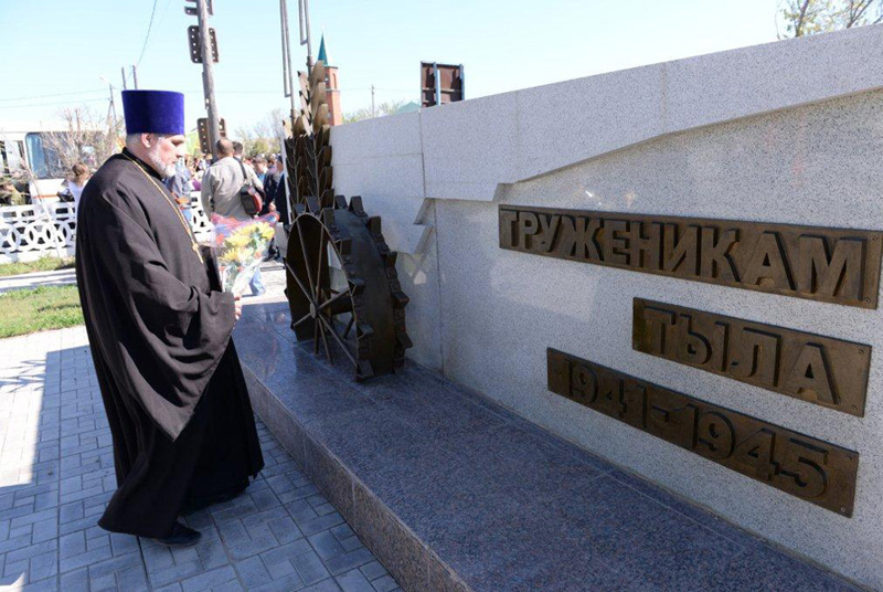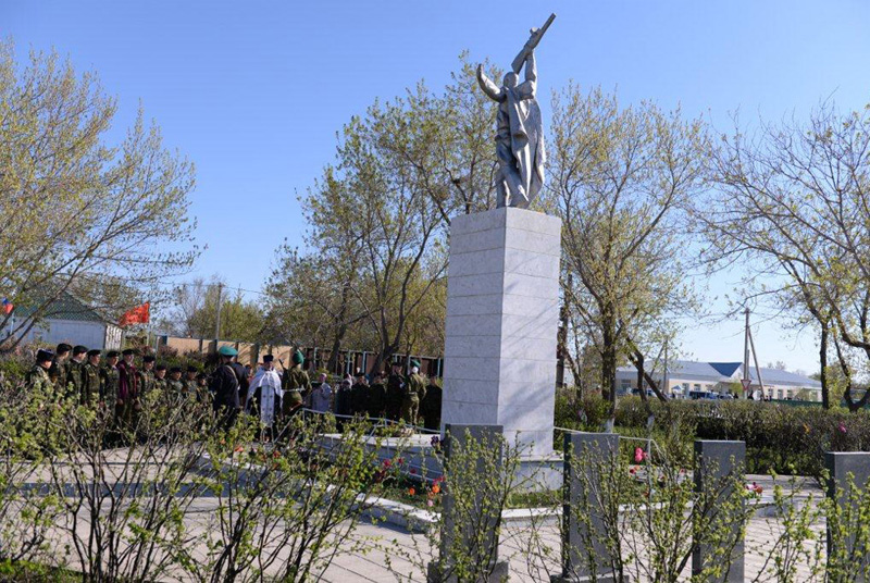 В Парке Победы посёлка перед памятником погибшим воинам отец Вячеслав совершил панихиду по усопшим приснопамятным вождям и воинам, за веру и Отечество на поле брани жизнь свою положившим, от ран и глада скончавшимся, в пленении и горьких работах невинно умученным и убиенным и всем Победы ради потрудившимся. Далее состоялись торжественные митинг и парад. Среди прочих в нём приняли участие казаки хуторского казачьего общества и молодёжного казачьего объединения «Казачий разъезд». От лица прихожан отец Вячеслав возложил цветы к памятнику погибшим воинам и труженикам тыла.