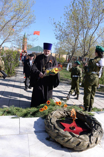 АДАМОВКА. 9 мая 2014 г. Благочинный Адамовского округа, настоятель храма Покрова Пресвятой Богородицы посёлка Адамовки иерей Вячеслав Кочкин принял участие в торжественных мероприятиях, посвященных празднику 9 Мая.